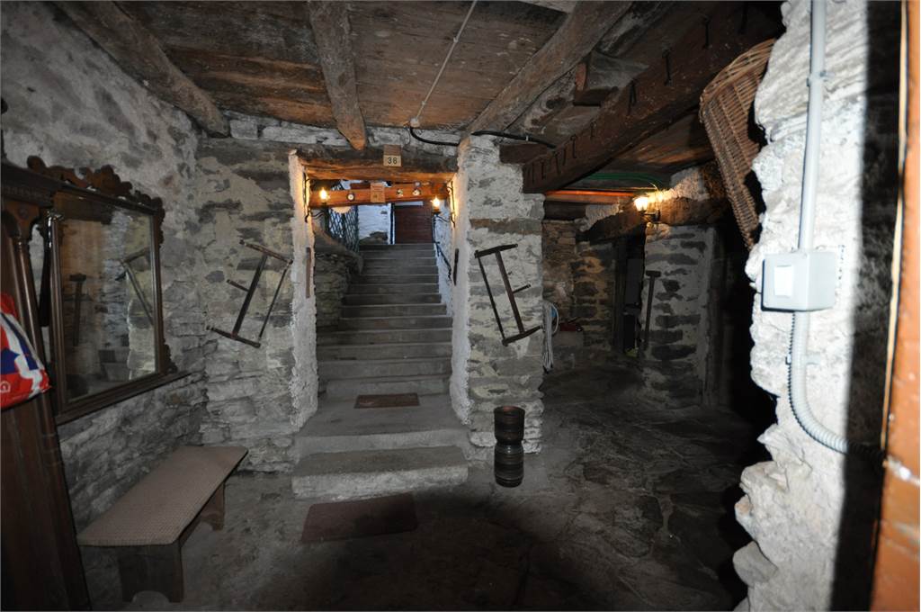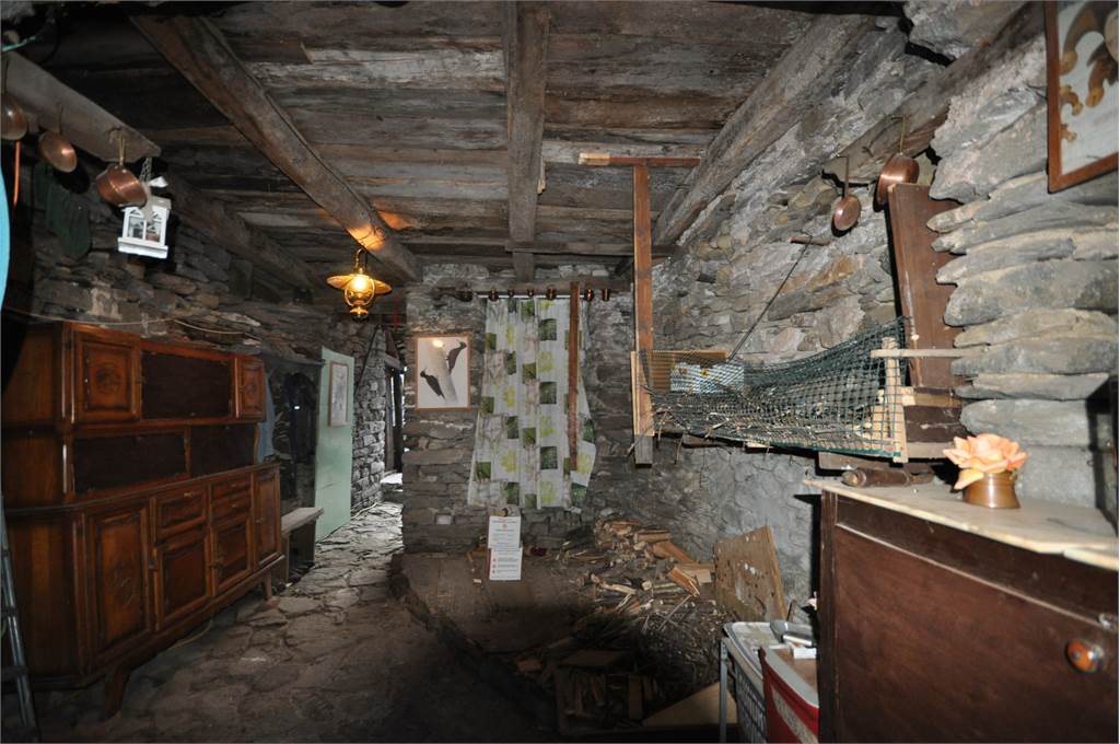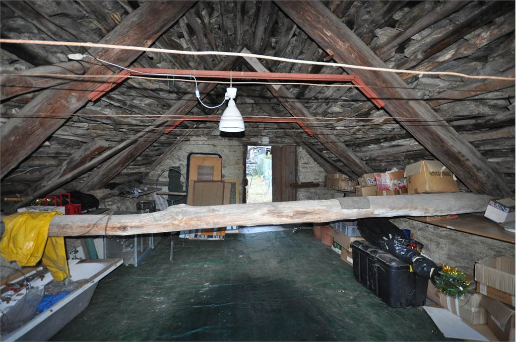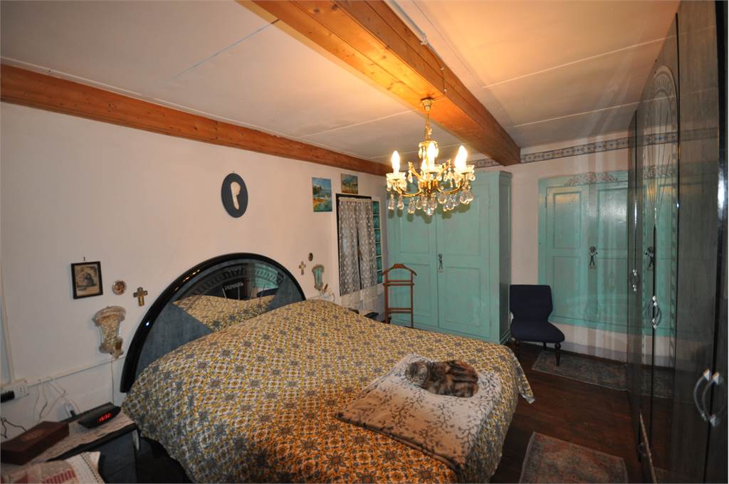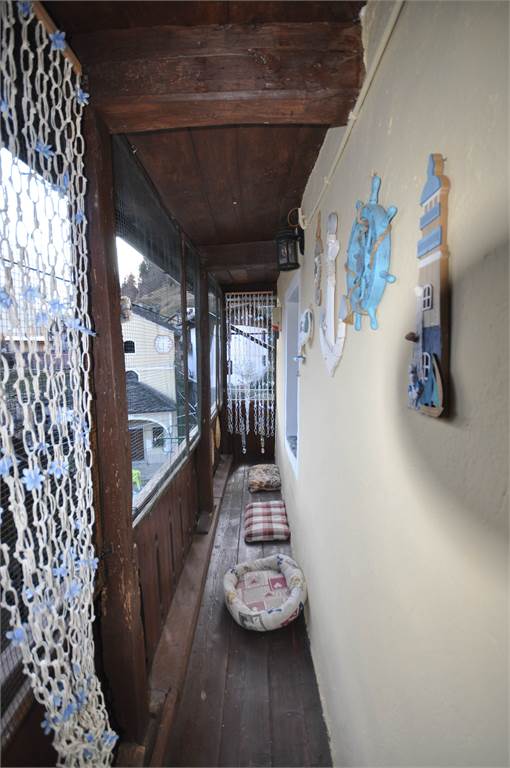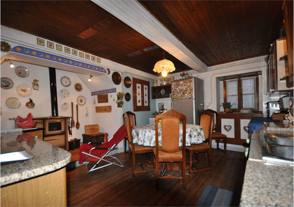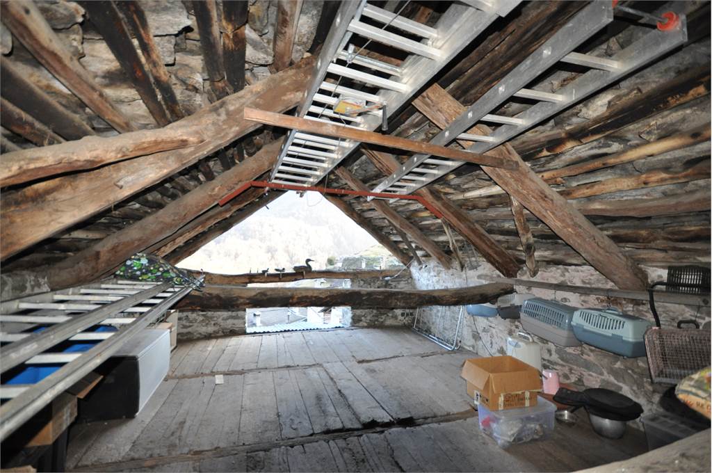 Through the internal courtyard of the property, you access the second property which develops on two levels plus an attic. The first floor consists of a spacious, unique room that opens onto a large wooden balcony in typical mountain style overlooking the property's garden and from where you can enjoy a beautiful view of the valley's mountains.